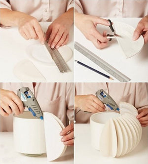 手工灯罩之蛋糕托盘变为美丽灯罩材料:蛋糕托盘、直尺、笔、热熔胶枪、剪刀。