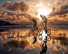 温馨提醒:注意劳逸结合。晚上要休息好,勤洗澡,勤换内衣。患有某些疾病的人不宜骑自行车旅游。如有过脑震荡病史、患闭塞性脉管为炎、疝气、痔疮、色盲、高度近视的人和孕妇、月经期妇女。