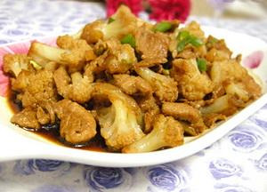 此菜忌用菜油、酱油,一是保持菜品淡雅的色泽,二是体现花菜清爽的口感。