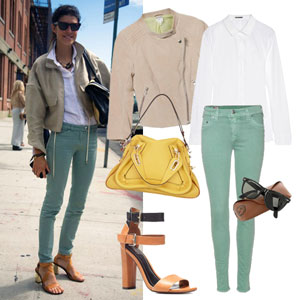 白衬衫搭配亮色筒裙与高跟鞋最适合下班有约会的时候穿着,正式的款式和轻松的色彩免去了下班还要特地更换服装的麻烦。