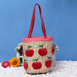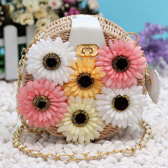 韩版新款清凉夏日花朵单肩包,可爱斑点草编包时尚编织女包。