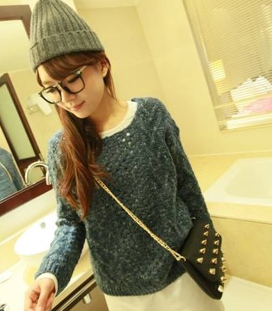 单色毛衣太单调?还在为这个问题感到烦恼的女孩,可以多尝试这种饰品装饰的毛衣,特别的闪眼、夺目哦!米白色的毛衣,衣身上被亮片星星装点着,有些小华丽的感觉呢。下身配短裙比较清甜,搭配牛仔裤装的话,更休闲些。