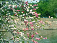 在深圳莲花山北侧有一片桃花林,近年每年都在扩种桃树。单去年扩种的桃树面积就近2.5亩,加上原有的桃树,莲花山北侧的桃花林现已达到10亩左右,桃花林已有桃树近千株。现时花开时节,放眼望去,一片红云被镶嵌在翠绿的草坪上,分外妖娆。