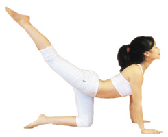 Step2 慢慢抬起左腿离地,并指向上方,腿面称孩子,右腿弯曲也抬离地板,保持右大腿面与地板垂直,维持这个姿势至少15秒钟,这个过程中一定要保持腿部的撑直和拉伸。